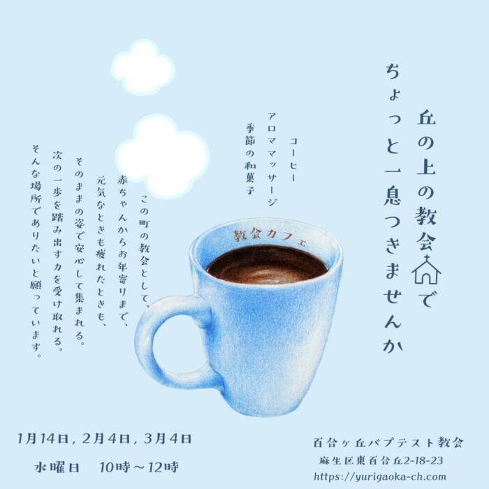 百合ヶ丘バプテスト教会では、月1回水曜日の午前中にカフェをオープンしています!